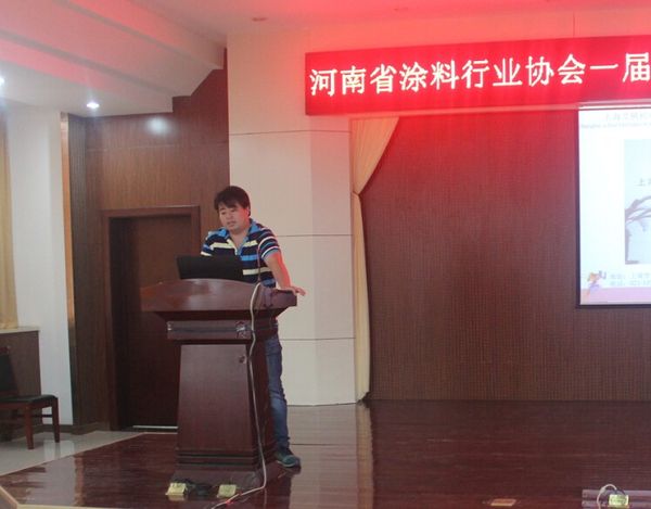 江苏双乐化工颜料有限公司销售主管徐海、中卫安认证中心河南办事处主任朱庆凯和上海艾枫机电设备有限公司销售工程师赵金森分别作《涂料中颜料的应用》、《中卫安认证工作情况》和《涂料生产自动化》相关报告。