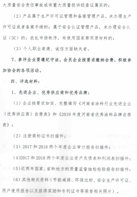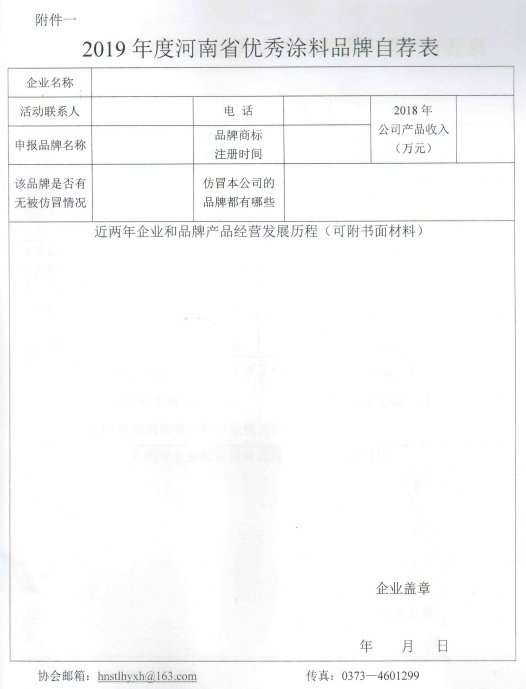 附件一:2019年度河南省优秀涂料品牌自荐表
